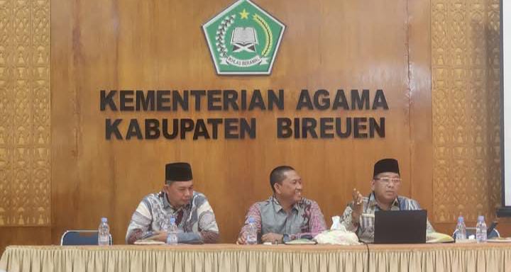 Kepala Kantor Kementerian Agama Kabupaten Bireuen, Dr H Zulkifli S Ag M Pd, didampingi Kasi Bimas Islam, H Rifal Fauzal SH serta Ketua Ikatan Penyuluh Agama Republik Indonesia (IPARI) Bireuen, Drs Muzakir, memberikan pembinaan kepada para Penyuluh Agama Islam di lingkungan Kemenag Bireuen, Rabu, 06 Agustus 2025