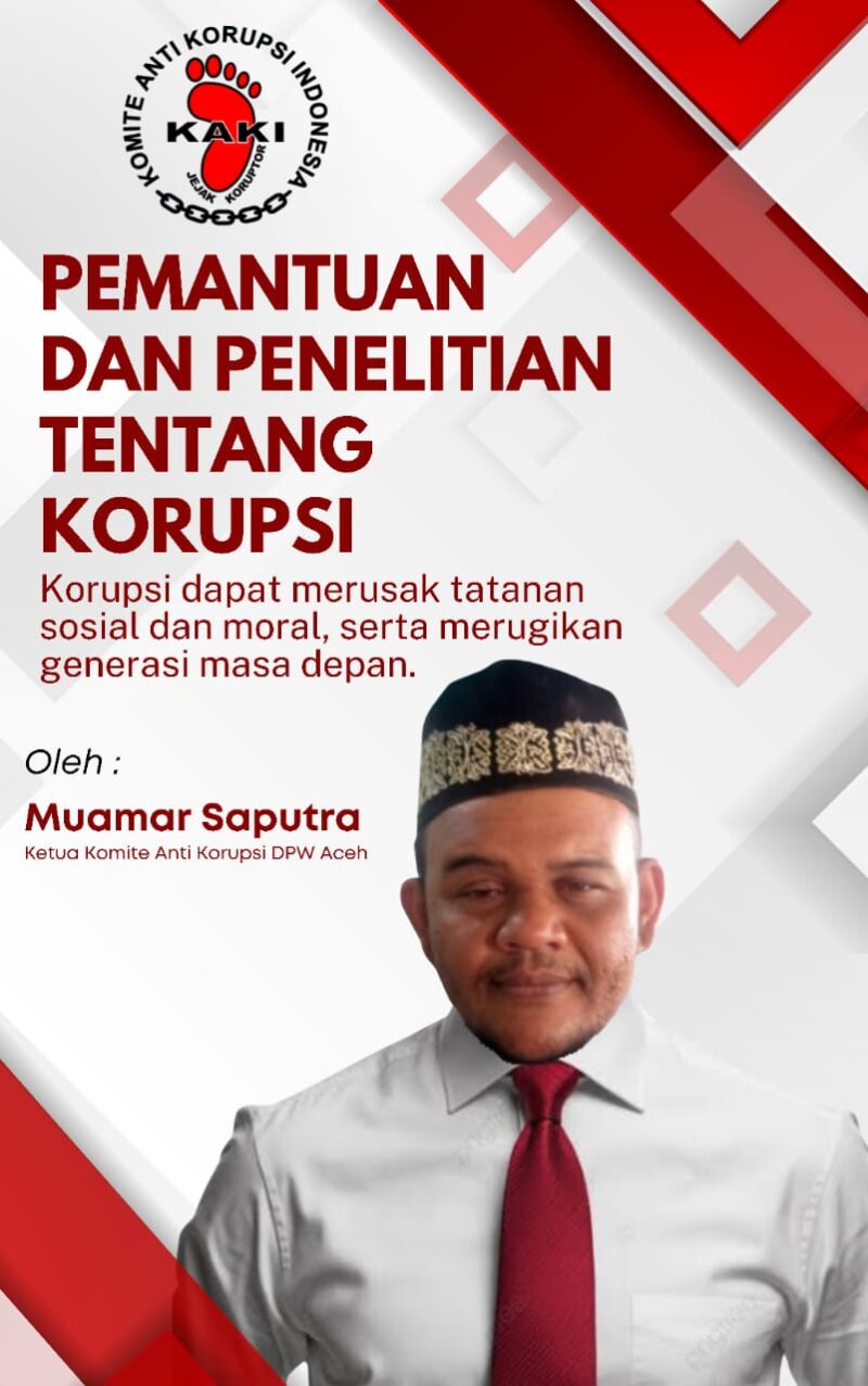 Komite Anti Korupsi Indonesia (KAKI) melakukan pemantauan dan penelitian terhadap sejumlah indikasi praktik korupsi di lingkungan Pemerintah Aceh, baik di tingkat provinsi maupun kabupaten/kota. Hal ini disampaikan langsung oleh Ketua KAKI, Muamar Saputra, saat dikonfirmasi media pada Kamis, 17 Juli 2025 di Banda Aceh.