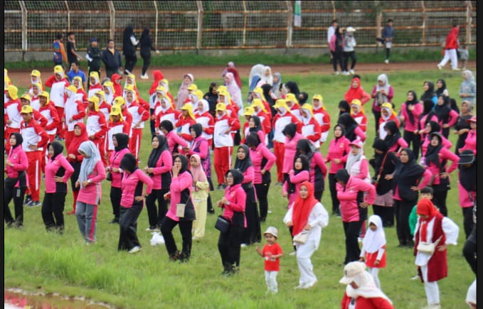 Kegiatan ini diikuti ratusan peserta dari berbagai kalangan, mulai dari unsur pemerintahan, aparat keamanan, hingga masyarakat umum. Suasana lapangan tampak semarak dengan iringan musik senam dan tawa ceria warga yang sudah memadati lokasi sejak pagi hari.