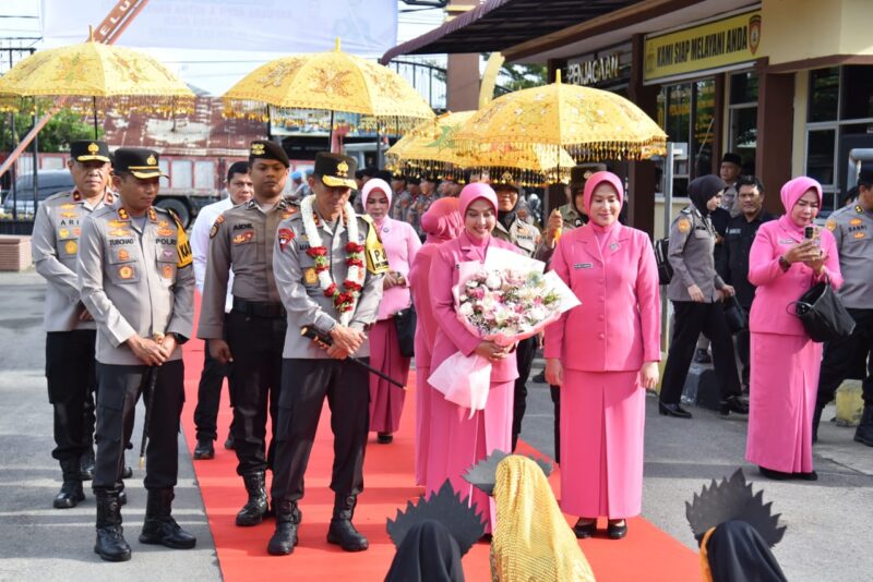 Kapolres Bireuen AKBP Tuschad Cipta Herdani, S.I.K., M.Med., Kom., didampingi Ketua Bhayangkari Cabang Bireuen sambut kunjungan kerja Kapolda Aceh Irjen Pol Drs Marzuki Ali Basyah, M.M., dan Ketua Bhayangkari Daerah Aceh Ny Ira Marzuki, Rabu 19 November 2025