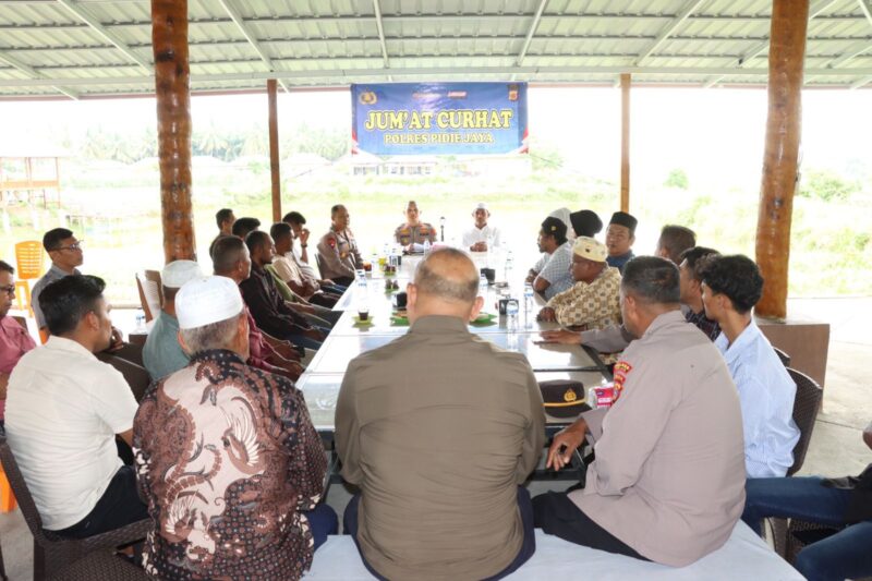 Dalam rangka mempererat hubungan antara kepolisian dan masyarakat, Polres Pidie Jaya melaksanakan kegiatan Jumat Curhat Presisi bersama warga sekitar Mapolres, Jumat (17/10/2025), bertempat di Kantin Tangguh Polres Pidie Jaya, Gampong Teungklut, Kecamatan Trienggadeng, Kabupaten Pidie Jaya.
