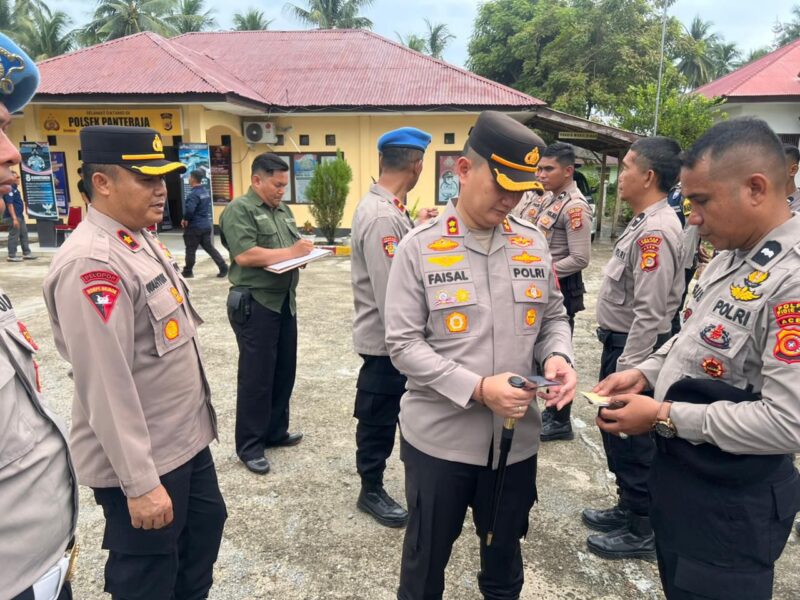 Kapolres Pidie Jaya AKBP Ahmad Faisal Pasaribu, S.H., S.I.K., M.H., memimpin langsung pelaksanaan apel pagi serta kegiatan Penegakan Ketertiban dan Disiplin (Gaktibplin) dan mitigasi pencegahan pelanggaran personel di Polsek Pante Raja, Kamis (16/10/2025) pagi.