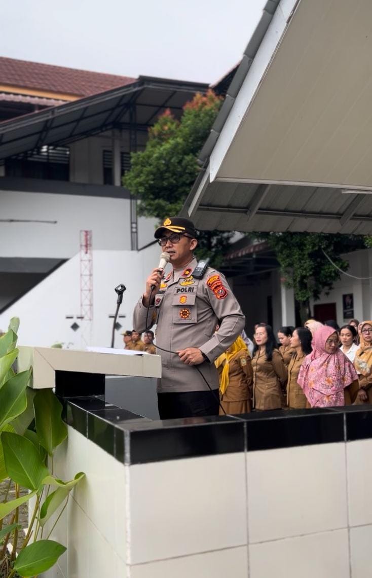 Medan I TribuneIndonesia.com-Kapolsek Sunggal, Kompol Bambang Gumanti Hutabarat, S.H., M.H., memberikan pesan inspiratif saat menjadi pembina upacara di SMK Negeri 9 Medan, Jalan Patriot No. 20, Kelurahan Lalang, Kecamatan Medan Sunggal, Senin (20/10/2025). Kegiatan tersebut turut dihadiri Kanit Binmas Iptu Rudi Salam Tarigan, S.H., dan anggota Binmas Aipda Sandro.