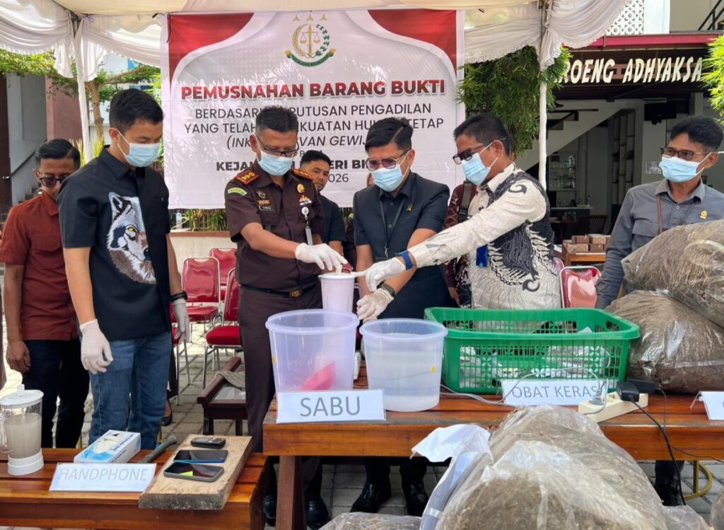 Kejaksaan Negeri (Kejari) Bireuen menggelar pemusnahan Barang Bukti / Sitaan yang berasal dari tindak pidana umum NARKOTIKA, tindak pidana umum terhadap Orang Dan Harta Benda (OHARDA), tindak pidana umum terhadap Keamanan Negara dan Ketertiban Umum (KAMNEGTIBUM) dan barang bukti/sitaan yang berasal dari Tindak Pidana Umum Lainnya (TPUL) di Kantor Kejaksaan Negeri Bireuen, Selasa, 10 Februari 2026.