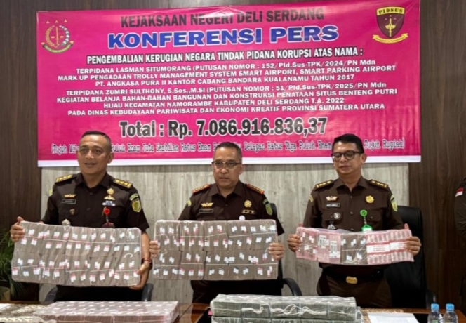 Hal tersebut disampaikan Kepala Kejaksaan Negeri (Kajari) Deli Serdang, Revanda Sitepu, S.H., M.H., didampingi Kasi Intelijen Boy Amali, S.H., dalam konferensi pers di kantor Kejari Deli Serdang, Senin (27/10/2025).