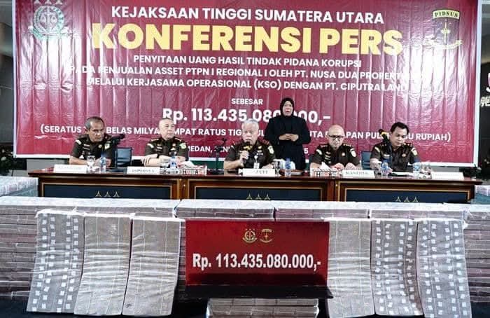 MEDAN |TribuneIndonesia.com-Kejaksaan Tinggi Sumatera Utara memperkuat langkah pemberantasan korupsi dengan menyita Uang Pengganti senilai Rp113,4 miliar dari PT Nusa Dua Propertindo, anak perusahaan PTPN 1. Penyitaan dilakukan pada Senin 24 November 2025, sebagai bagian dari penyelidikan dugaan korupsi penjualan aset PTPN 1 Regional 1 yang dialihfungsikan menjadi kawasan perumahan Citra Land.