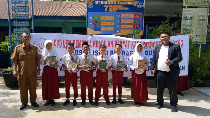 Deli Serdang I TribuneIndonesia. Com-Ketua Dewan Pimpinan Daerah Lembaga Pembela Keadilan Rakyat (DPD LPKR) Kabupaten Deli Serdang, Nanda Afriyansyah, SH, melaksanakan kegiatan sosial berupa sosialisasi dan pembagian Al-Qur’an di beberapa sekolah dasar di wilayah Deli Serdang, Selasa (30/9/2025).