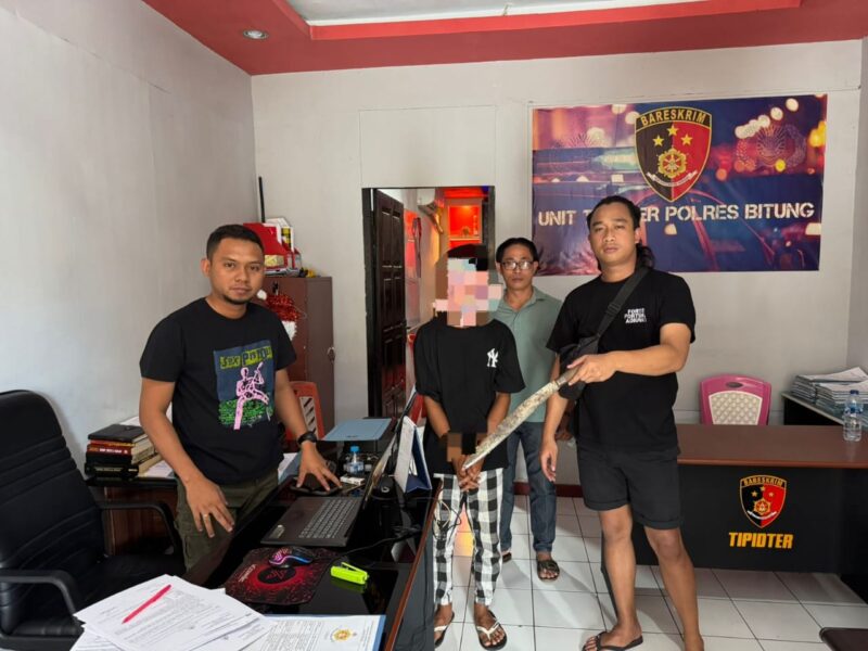 Berbekal data di lapangan, petugas berhasil melacak keberadaan CH di kawasan Girian Permai. Setelah diinterogasi singkat, pelaku mengakui perbuatannya dan polisi juga menyita satu bilah parang yang digunakan sebagai barang bukti utama.