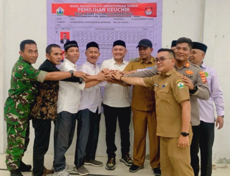 T. Irfan terpilih sebagai Geuchik Gampong keude Matang Geulumpang Dua Kecamatan Peusangan Kabupaten Bireuen dalam Pemilihan Geuchik (Pilkades) yang digelar senin (10/11/2025). Ia meraih suara terbanyak dari satu calon lainnya dalam pemilihan yang berlangsung di gedung Karang Taruna Peusangan.