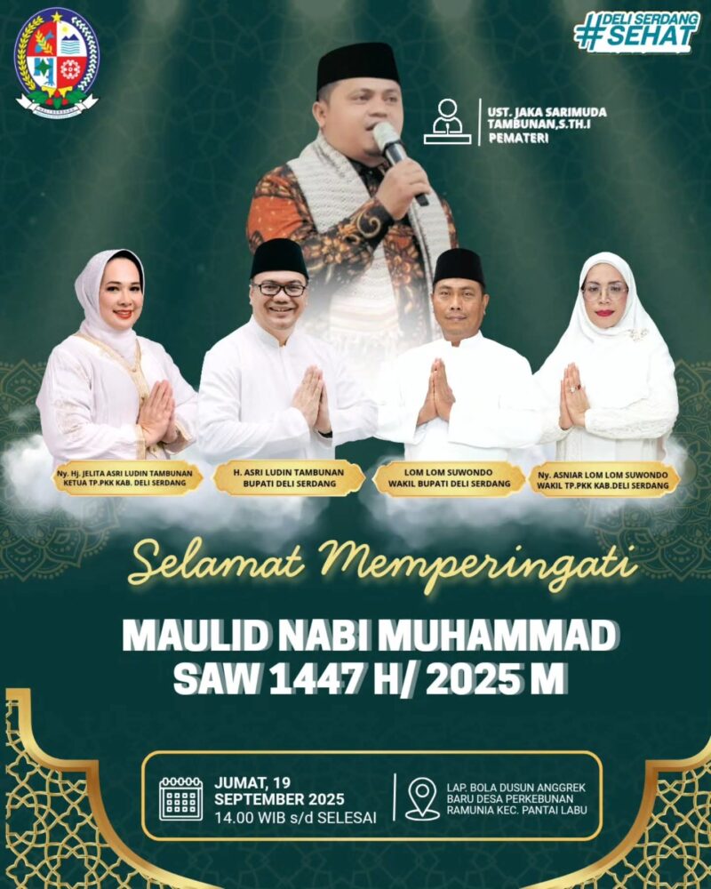 Pemerintah Kabupaten Deli Serdang bersama masyarakat akan memperingati Maulid Nabi Muhammad SAW 1447 Hijriah atau 2025 Masehi dengan penuh khidmat. Perayaan ini menjadi momentum mempererat tali silaturahmi sekaligus menumbuhkan semangat meneladani akhlak Rasulullah SAW.