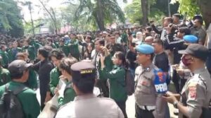 Ketegangan mulai pecah ketika mahasiswa berusaha merangsek masuk ke halaman gedung DPRD. Dorong-mendorong dengan aparat tak terhindarkan, pagar besi pintu utama roboh diterjang massa, dan suasana pun memanas. Teriakan mahasiswa berpadu dengan benturan tameng polisi, membuat suasana di depan gedung dewan berubah menjadi arena chaos.