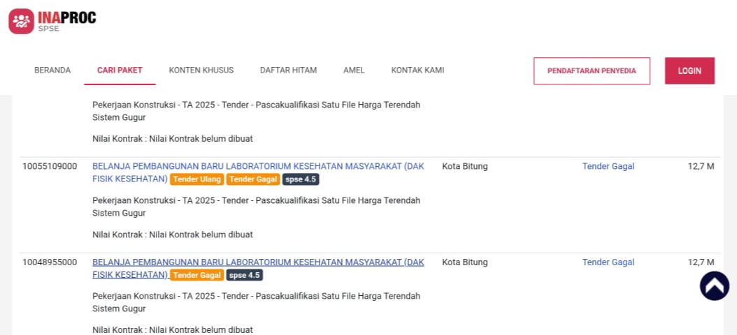 Kejanggalan serius muncul setelah data resmi dari Layanan Pengadaan Secara Elektronik (LPSE) menunjukkan bahwa proyek vital ini berstatus gagal tender.