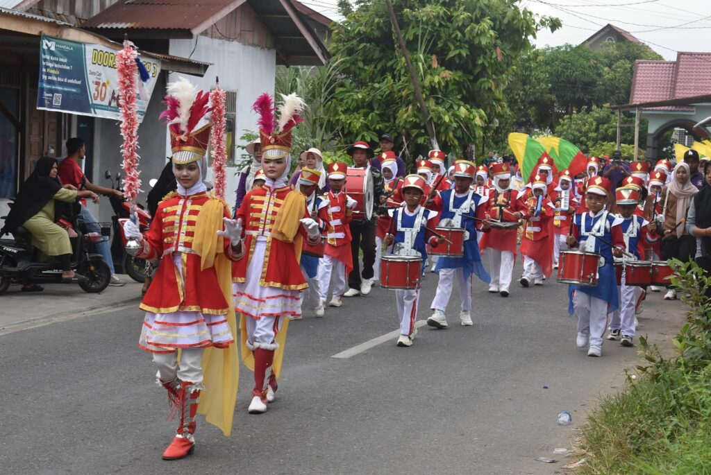 Diiringi drumband,antusias warga mengikuti kegiatan jalan santai diikuti masyarakat dari kalangan pelajar, muda mudi dan hampir seluruh warga Geulanggang Gampong
