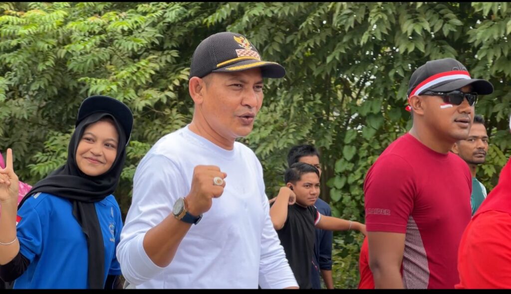 Ratusan warga Gampong Geulanggang Gampong, Kota Juang Kabupaten Bireuen bersama unsur lainnya, melaksanakan jalan sehat untuk meriahkan peringatan HUT ke 80 RI berlangsung di kawasan desa objek wisata Paya Santewan Indah Gampong Geulanggang Gampong, Minggu (24/08/2025)