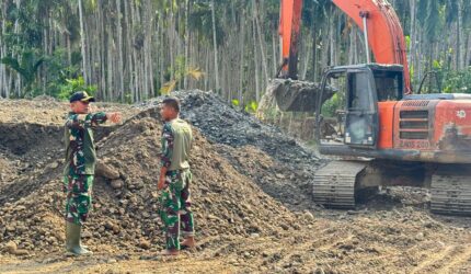 TNI dan Polri Pastikan Ketersediaan Material TMMD, Kasdim 0111/Bireuen Tinjau Lokasi Pengambilan Material di Desa Alu Lam Saba.