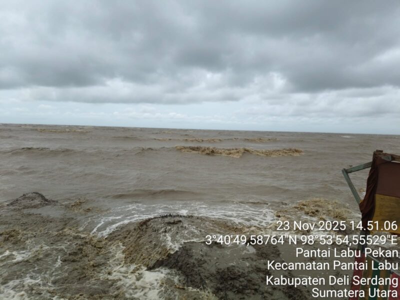 Deli Serdang |TribuneIndonesia.com-Gelombang tinggi disertai angin kencang kembali menghantam pesisir Pantai Labu, khususnya di Desa Rugemuk dan Paluh Sibaji, pada Minggu (23/11/2025). Terjangan ombak yang semakin kuat membuat warga pesisir diliputi ketakutan. Banyak warga berjaga hingga larut malam di tepi pantai, khawatir bencana lebih besar kembali mengancam rumah dan permukiman mereka.