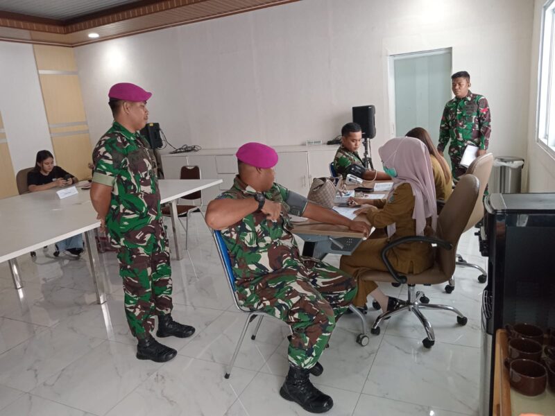 Dalam rangka kemanusiaan dan membantu sesama, Prajurit Yonmarhanlan VIII Bitung mengikuti kegiatan donor darah di PT. Indofood CBP Sukses Makmur, Kel. Madidir Weru, Kec. Madidir, Kota Bitung, Senin (14/07/25).