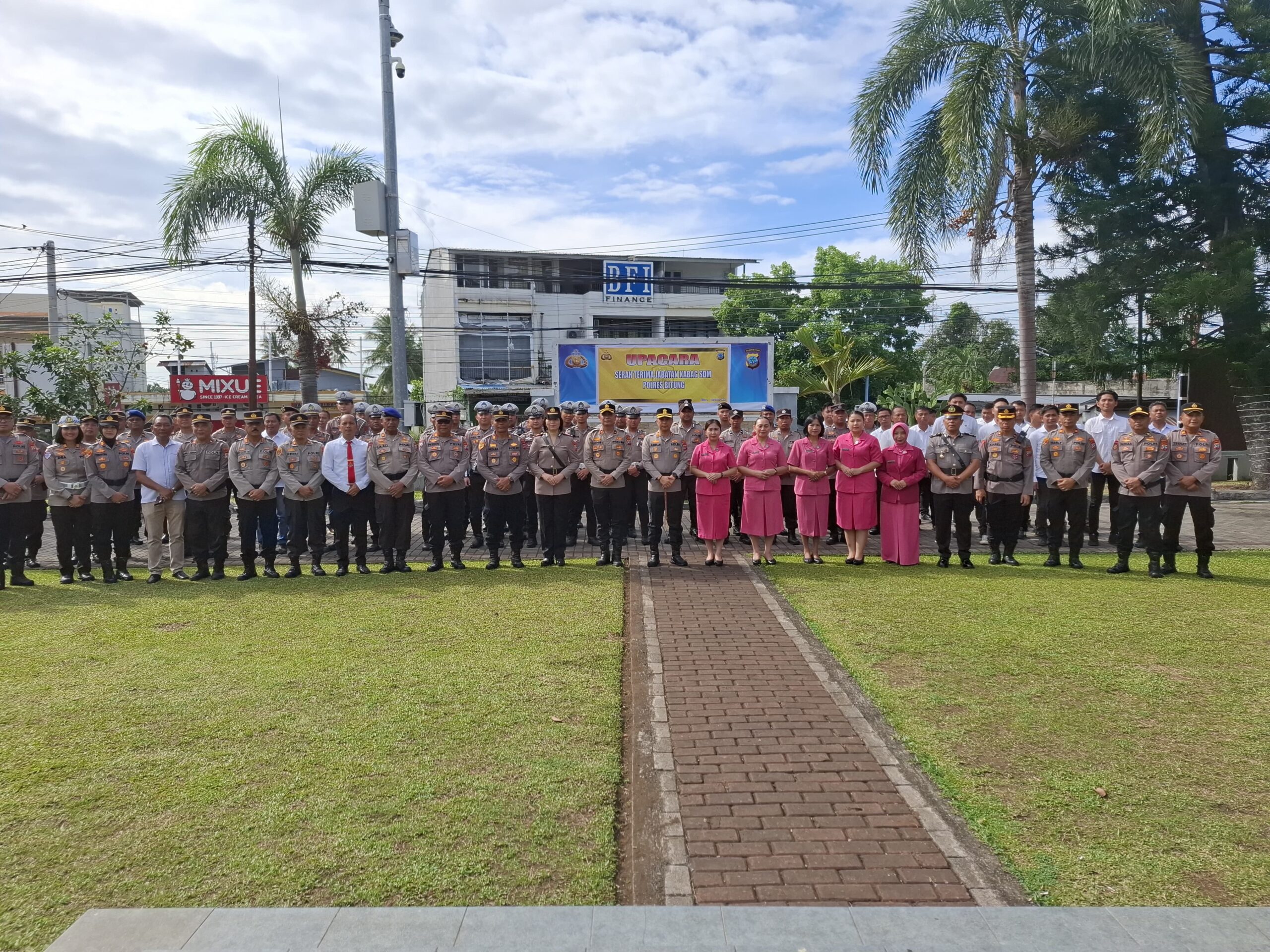 Ujar AKBP Albert Zai di hadapan peserta upacara yang terdiri dari jajaran PJU, Kapolsek, hingga perwakilan Bhayangkari Cabang Bitung.