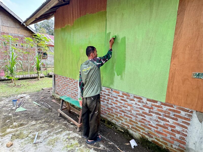 Tahap pengecatan ini menjadi simbol transformasi nyata, rumah yang sebelumnya sederhana dan memprihatinkan, kini berubah menjadi hunian yang lebih layak, nyaman, dan membanggakan bagi penghuninya. Kehadiran Satgas TMMD bersama masyarakat setempat dalam proses pengerjaan juga memperlihatkan kuatnya semangat gotong royong yang menjadi roh utama program ini.
