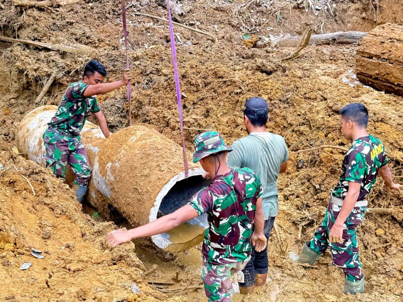 Warga dan Satgas TMMD Turunkan Gorong-Gorong untuk Pembangunan Jalan di Jeumpa Sikureung