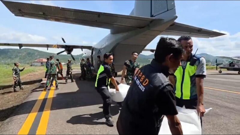 TNI Angkatan Laut melalui Pusat Penerbangan TNI AL (Puspenerbal) melaksanakan kegiatan dukungan logistik dalam rangka penanganan bencana alam di wilayah Kabupaten Gayo Lues, Aceh. Minggu4 Januari 2026.