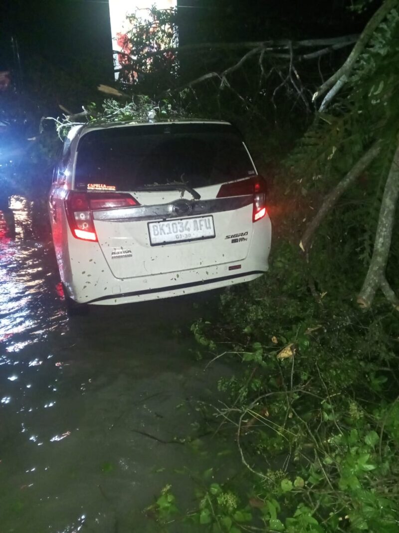 BATANG KUIS | TribuneIndonesia.com – Sebuah pohon berukuran besar tiba-tiba tumbang dan menghantam sebuah mobil Daihatsu Bk 1034 AFU yang tengah melintas di Jalan Batang Kuis–Tanjung Morawa, Kabupaten Deli Serdang, Sabtu malam dini hari, 29 November 2025. Insiden tersebut sontak mengejutkan warga sekitar, terlebih peristiwa terjadi tanpa tanda-tanda sebelumnya.
