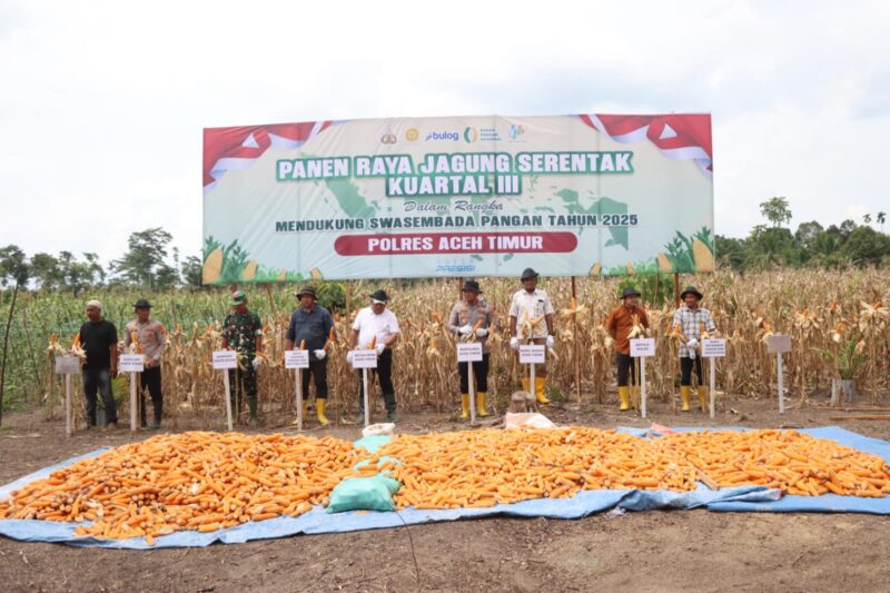 Polres Aceh Timur, Polda Aceh melaksanakan Panen Raya Jagung Kuartal III Tahun 2025 di Dusun Alue Meunuang, Desa Pante Rambong, Kecamatan Pantee Bidari, Kabupaten Aceh Timur, pada hari Sabtu, (27/09/2025).