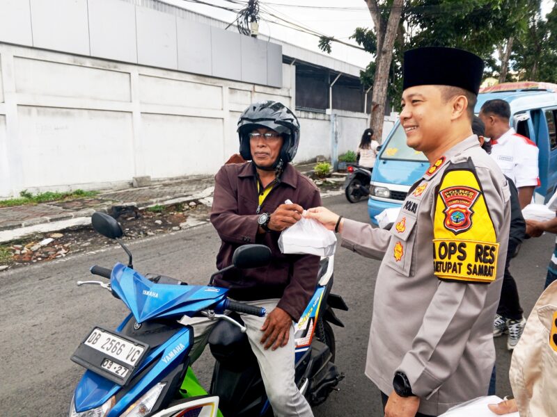 Bitung | Tribuneindonesia com –Kepolisian Resor (Polres) Bitung menunjukkan sisi humanisnya dengan menggelar aksi pembagian takjil di ruas Jalan Wolter Mongisidi, Girian Weru Dua, Kecamatan Girian, Kota Bitung, Jumat (13/03/26).