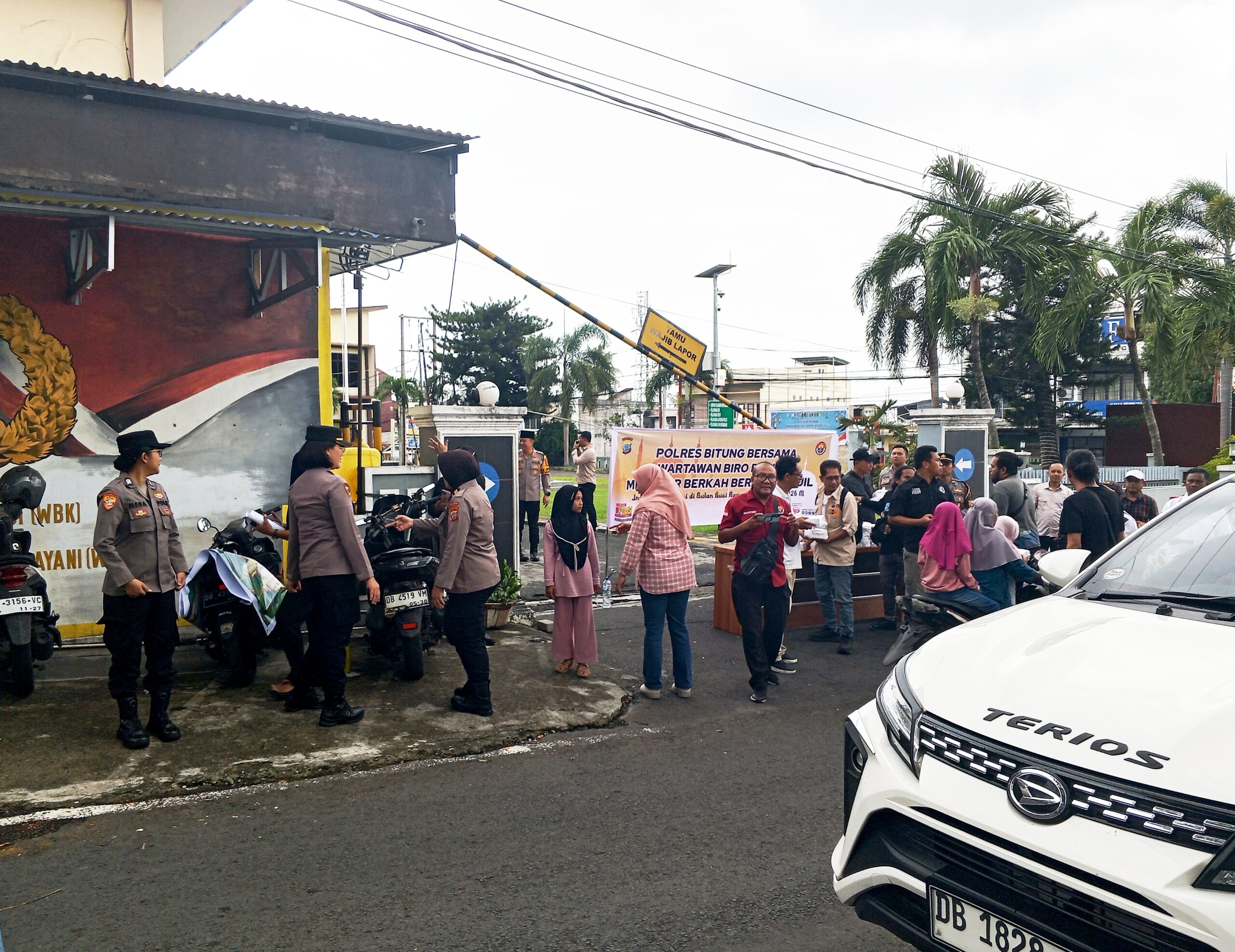 Tepat pukul 16.00 WITA, kegiatan yang dipusatkan di depan Mapolres Bitung ini langsung menyedot perhatian warga maupun pengendara yang melintas.