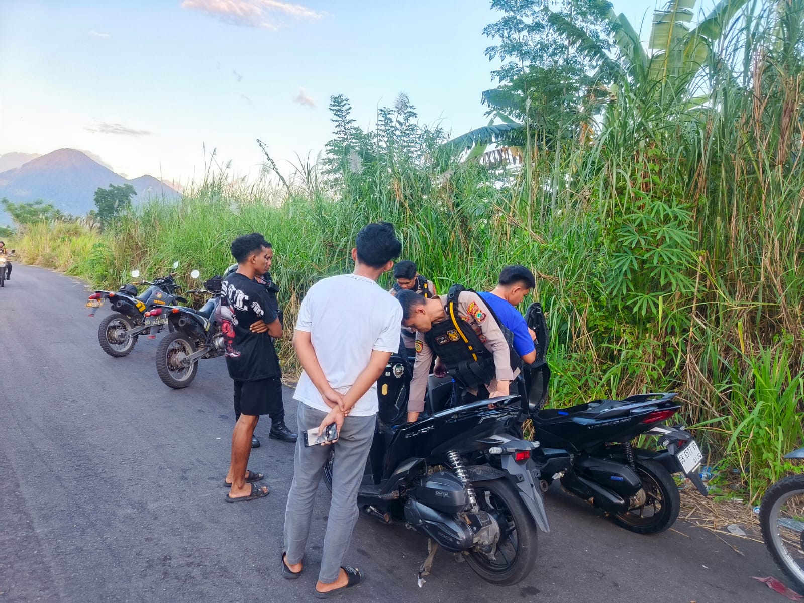 Dalam pergerakannya, petugas sempat menghentikan sekelompok warga yang menunjukkan gerak-gerik mencurigakan.