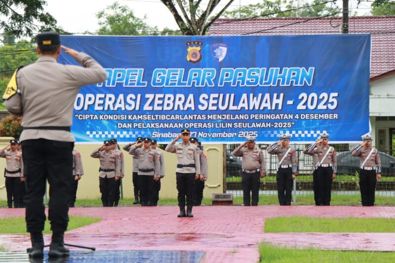SIMEULUE Tribune Indonesia.com – Polres Simeulue menggelar Apel Gelar Pasukan Operasi Zebra Seulawah 2025 di Lapangan Apel Mapolres Simeulue, pukul 08.40 WIB. Operasi kepolisian terpusat ini bertujuan meningkatkan kesadaran dan ketertiban masyarakat dalam berlalu lintas, serta menekan angka pelanggaran dan kecelakaan di Kabupaten Simeulue. Senin (17/11/2025).