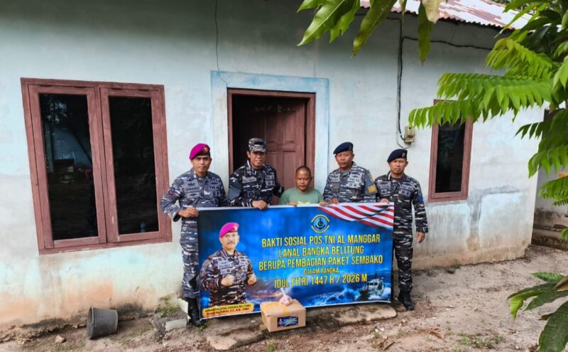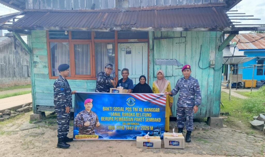Pos TNI AL Manggar laksanakan kegiatan Bakti Sosial dengan berbagi paket sembako kepada sejumlah nelayan di desa Mayang kecamatan Kelapa Kampit.(Senin,16/03/2026).