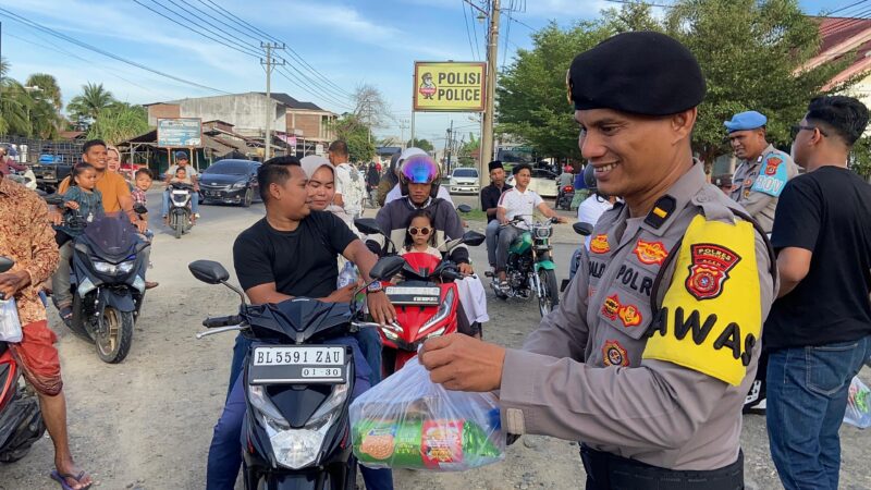 Selain berbagi takjil, masyarakat juga diimbau untuk selalu menjaga keamanan dan keselamatan dalam berlalu lintas, dengan mamatuhi peraturan yang berlaku