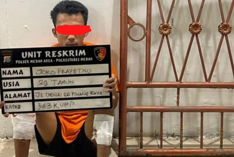 Pelaku berinisial JP alias Kakek (32), warga Jalan Denai, dikenal kerap mencuri barang-barang berbahan logam di sekitar lokasi tempat tinggalnya. Ia terpaksa mendapat tindakan tegas dan terukur dari petugas lantaran berusaha melawan saat diamankan.