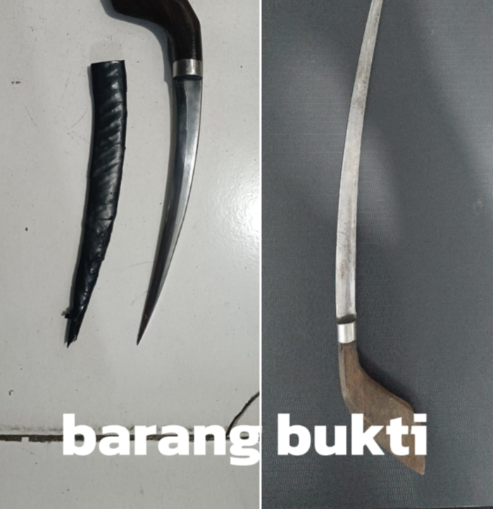 Dalam penangkapan tersebut, polisi juga berhasil mengamankan barang bukti berupa dua bilah pisau badik yang digunakan para pelaku untuk melancarkan aksinya.