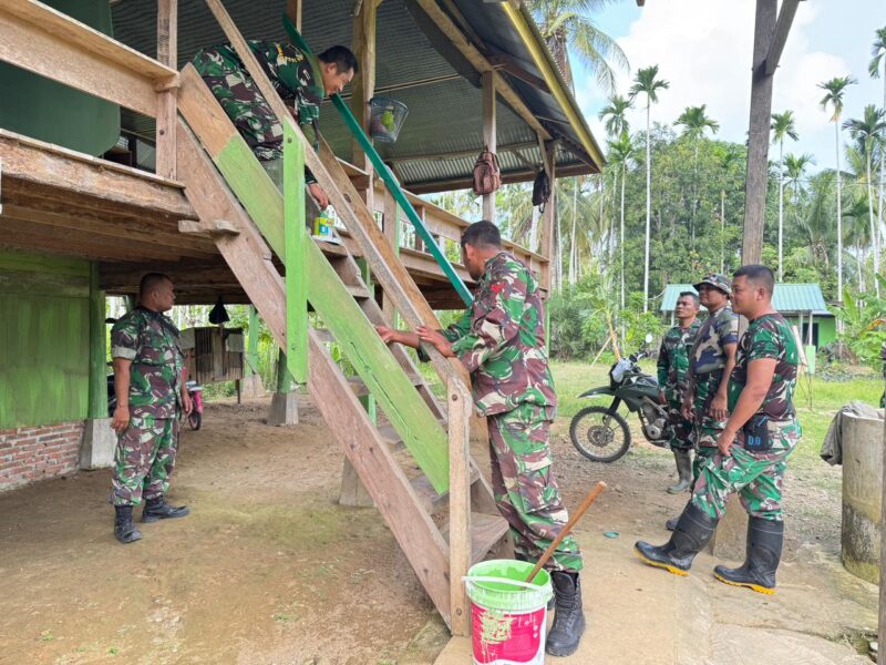 Pengecatan dilakukan untuk memperindah sekaligus merawat bangunan yang menjadi pusat kegiatan belajar mengaji dan pembinaan keagamaan masyarakat. Satgas TMMD bersama warga setempat bergotong royong melaksanakan pekerjaan agar balai pengajian tampak lebih bersih, rapi, dan nyaman digunakan.