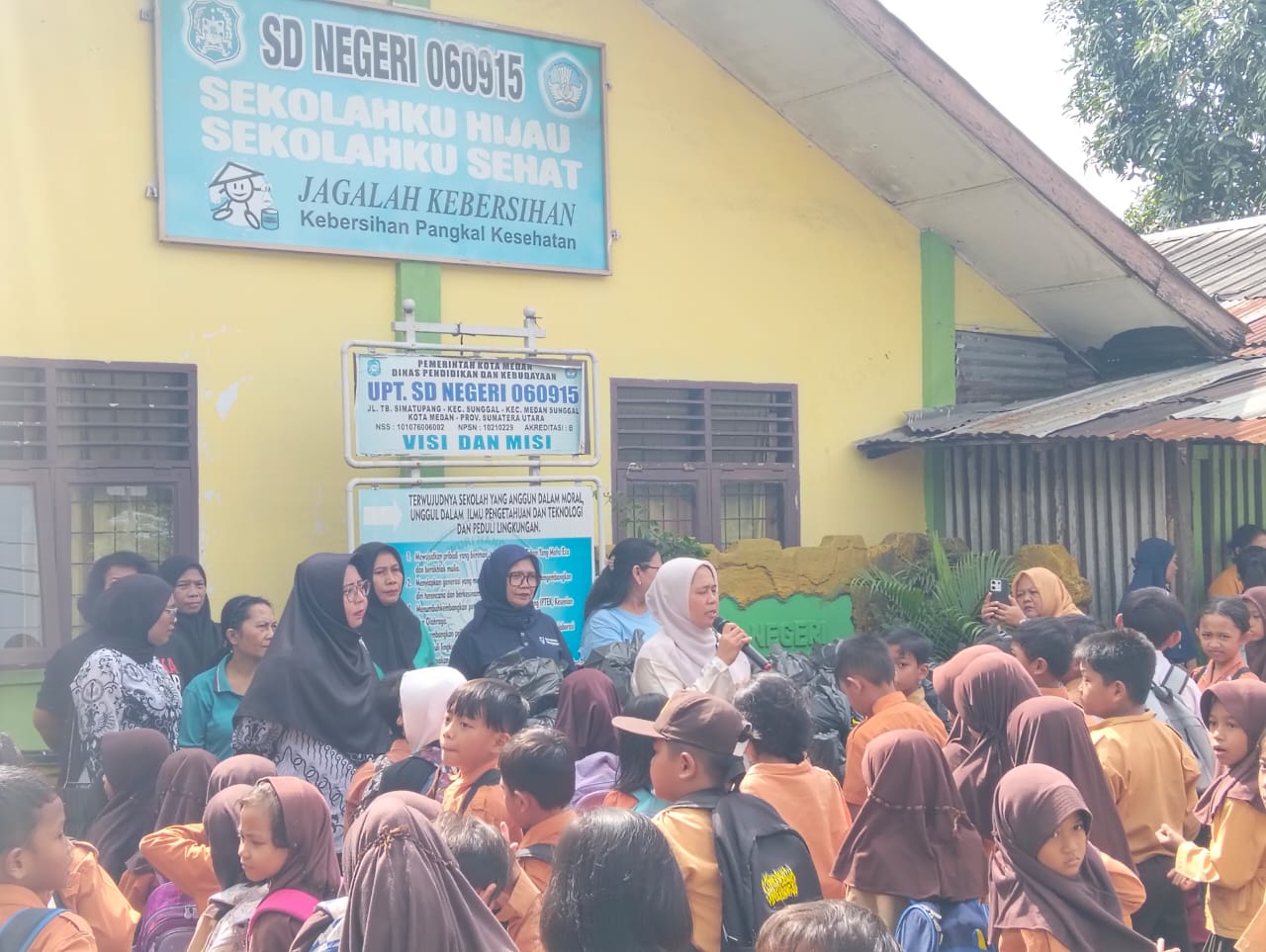 Medan Tribuneindonesia | UPT SD Negeri 060915 kecamatan Medan sunggal memberikan kan bantuan kepada anak didik yang terdampak banjir, Sabtu (13/12/2025).