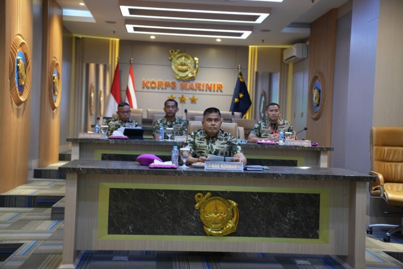 Dispen Kormar TNI Angkatan Laut (Jakarta) Kepala Staf Korps Marinir (Kas Kormar) Mayor Jenderal TNI (Mar) Muhammad, Nadir, M.Tr.Opsla. mewakili Panglima Korps Marinir (Pangkormar) Letnan Jenderal TNI (Mar) Dr. Endi Supardi, S.E., M.M., M.Tr.Opsla., CHRMP., CRMP., selaku Korps Chief Marinir, memberikan pembekalan secara virtual kepada para siswa Pendidikan Pembentukan Perwira Singkat (Diktukpakat) III T.A. 2025 dari Ruang Puskodal Korps Marinir, Jalan Prajurit KKO Usman dan Harun No. 40, Kwitang, Jakarta Pusat, Kamis (6/11/2025).