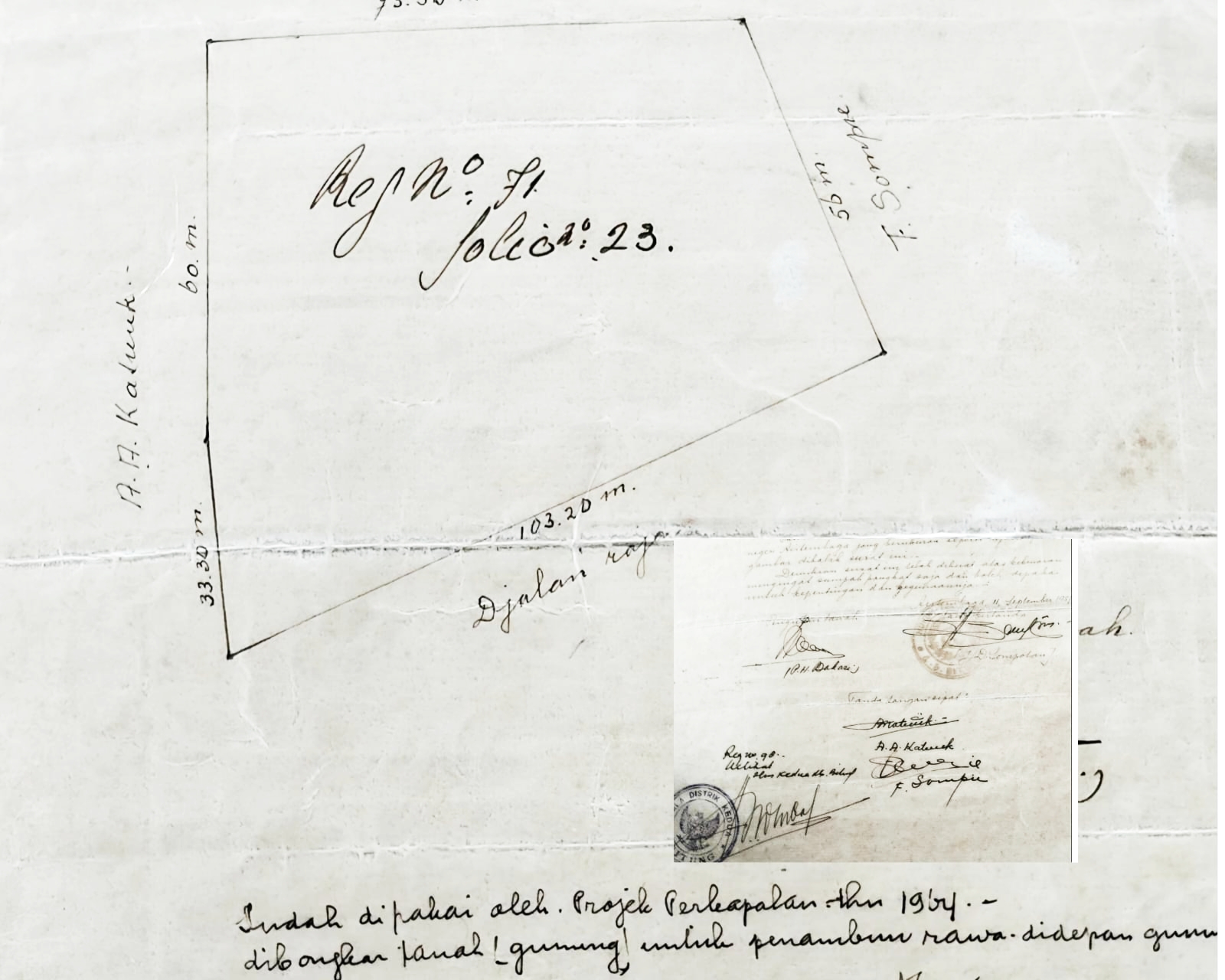 Menilik sisi historis, lahan keluarga Palenewen memang memiliki rekam jejak yang panjang dengan industri perkapalan. Dokumen register lama mencatat bahwa pada tahun 1964, sebagian lahan tersebut sempat dipinjam untuk proyek penimbunan galangan kapal.