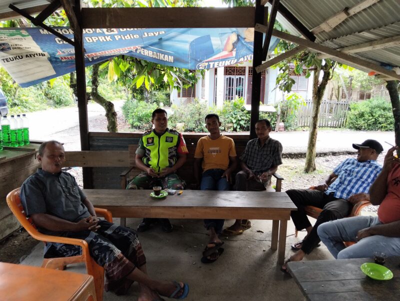 Babinsa Koramil 11/Bandar Baru Kodim 0102/Pidie, Serda Ismet Metni Siregar,melaksanakan kegiatan Komsos di Desa Jimjiem Kecamatan Bandar Baru,Kabupaten Pidie Jaya,Jum’at,16 Mei 2025.