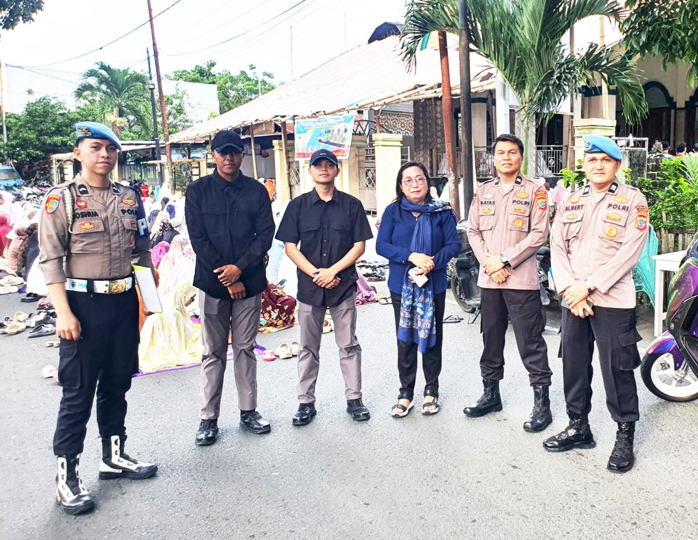 Sejak gema takbir berkumandang hingga pelaksanaan Sholat Idul Fitri berakhir, ratusan personel kepolisian dikerahkan untuk menjaga stabilitas keamanan dan ketertiban masyarakat (kamtibmas).