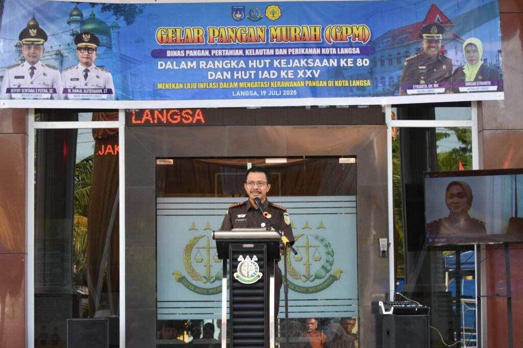 Dalam rangka memperingati Hari Ulang Tahun Kejaksaan RI ke-80 dan Hari Ulang Tahun Ikatan Adhyaksa Dharmakarini ke-25, Kejaksaan Negeri (Kejari) Langsa bersama Pemerintah Kota Langsa menggelar Pasar Murah dan Bazar Usaha Mikro, Kecil dan Menengah (UMKM), Sabtu, 19 Juli 2024.