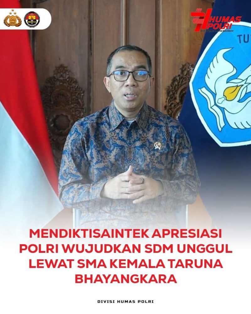 Menteri Pendidikan Tinggi, Sains, dan Teknologi (Mendiktisaintek) Republik Indonesia, Prof. Brian Yuliarto, S.T., M.Eng., Ph.D., memberikan pujian terhadap kontribusi Polri dalam mempercepat terwujudnya pembangunan sumber daya manusia (SDM) unggul Indonesia, Jumat (31/10/25).