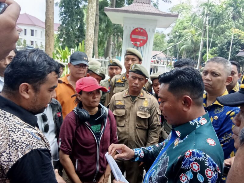 Massa yang datang membawa spanduk dan karton tuntutan menyuarakan kekecewaan atas rekrutmen honorer baru yang mereka nilai bertentangan dengan Peraturan Pemerintah No. 49 Tahun 2018 serta UU ASN No. 20 Tahun 2023. Mereka menuding adanya praktik nepotisme dan pengangkatan tanpa prosedur resmi.