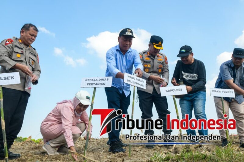 Deli Serdang I TribuneIndonesia.com-Sinergitas antara Pemerintah Kabupaten (Pemkab) Deli Serdang dan kepolisian kembali terlihat nyata dalam upaya memperkuat ketahanan pangan. Bersama Polres Pelabuhan Belawan, Pemkab Deli Serdang melaksanakan kegiatan Tanam Raya Jagung Serentak Kuartal I Tahun 2026 di Pasar I Sekip, Lahan Datok Engguet, Kecamatan Hamparan Perak, Sabtu (7/3/2026).