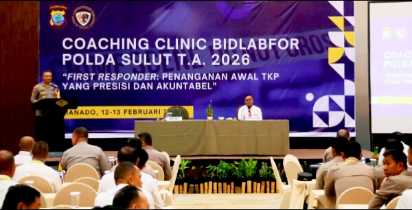 Hal ini ditegaskan melalui pembukaan kegiatan Coaching Clinic Bidang Laboratorium Forensik (Bidlabfor) T.A. 2026 yang berlangsung khidmat di Hotel Peninsula, Manado, pada Kamis (12/02).