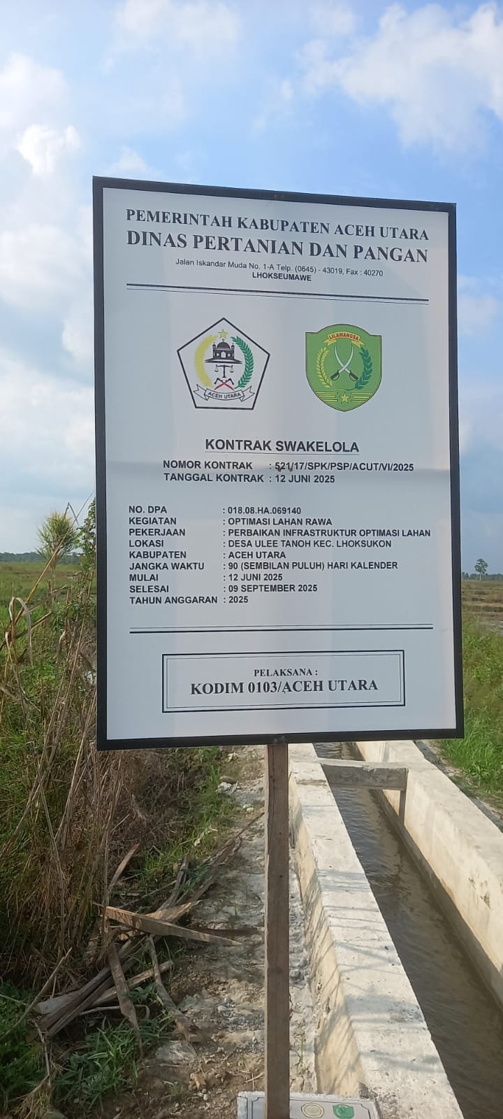 Melalui Dinas Pertanian dan Pangan Aceh Utara yang berkerjasama dengan Kodim 0103 Aceh Utara, melaksanakan kegiatan optimasi lahan rawa di beberapa titik di Aceh Utara, termasuk dikecamatan Lhoksukon, kegiatan Optimasi lahan rawa secara langsung dipantau oleh Bintara Pembina Desa,(Banbinsa ) yang selalu hadir dilokasi saat proses pekerjaan sedang berlangsung.