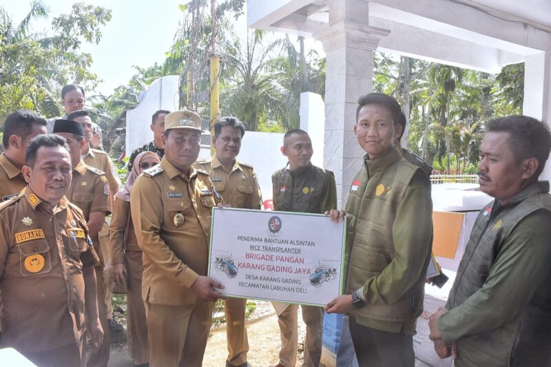 Pada kesempatan tersebut, Wabup Deli Serdang turut menyerahkan bantuan alat dan mesin pertanian (alsintan), antara lain satu unit drone dan rice transplanter kepada Brigade Pangan Karang Gading Sejahtera, serta sejumlah rice transplanter kepada Brigade Pangan di Desa Karang Gading, Desa Pematang Johar, dan Desa Telaga VII. Selain itu, diberikan pula bantuan beras dan tali asih kepada kaum duafa.