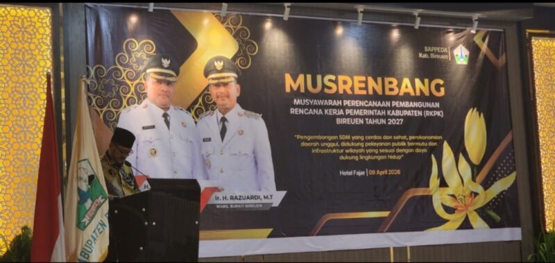 Wakil Bupati Bireuen, Ir. Razuardi, ST., M.T membuka Musrenbang RKPK Bireuen Tahun 2027 di Aula Hotel Fajar. Kegiatan ini dihadiri oleh unsur Legislatif, Forkopimda, pejabat daerah, tokoh masyarakat, akademisi, serta berbagai pemangku kepentingan. Kamis 9 April 2026