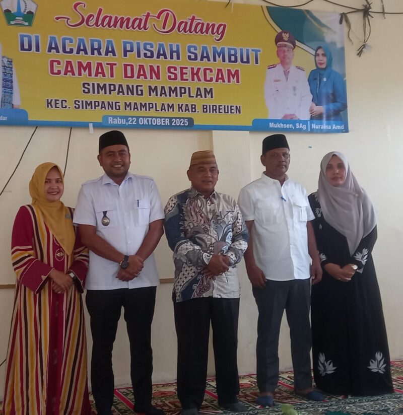 Suasana begitu haru menyelimuti acara perpisahan Camat dan Sekcam Simpang Mamplam. Acara lepas sambut berlangsung di Aula Kantor Camat pada Rabu ( 22/10/25). Camat lama, Hendry Maulana, S.IP.M.S.M,, ke Camat yang baru Mukhsen S.Ag dan Sekcam Bukhari S.sos, diselimuti suasana begitu haru dan kesan penuh dengan makna. Acara tersebut dihadiri oleh seluruh jajaran Forkopimcam, tokoh masyarakat, kepala desa se-Kecamatan simpang, dan para tamu undangan lainnya.